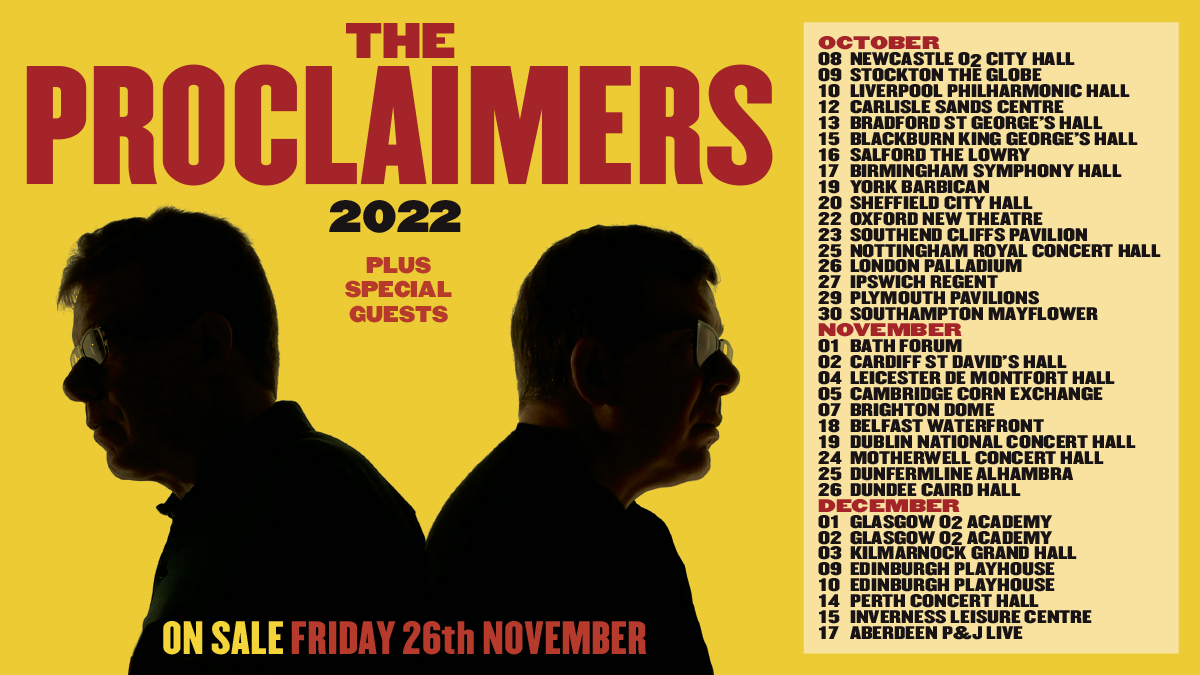 The Proclaimers will hit the road in late 2022 for an extensive UK and Ireland tour.