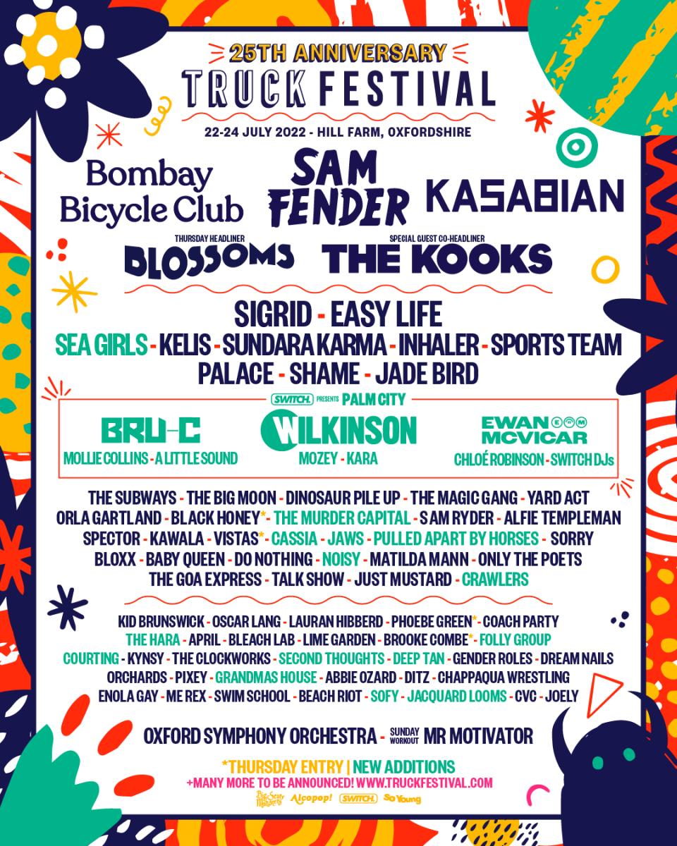 Blossoms, Bombay Bicycle Club, Sam Fender, Kasabian, and special guest co-headliner The Kooks will top the bill. Also, set to perform across the weekend are Sigrid, Easy Life, Kelis, Sundara Karma, Inhaler, Sports Team, Palace, Shame, Jade Bird, The Subways, The Big Moon, Dinosaur Pile Up, The Magic Gang, Orla Gartland, Black Honey, Sam Ryder, Alfie Templeman, Spector, Yard Act, Kawala, Vistas, Sorry, Bloxx, and Baby Queen.