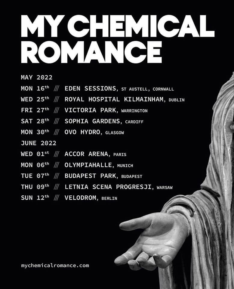 My Chemical Romance have added five more UK and Ireland shows to their run of comeback gigs in 2022. My Chemical Romance tickets go on sale at 10am today.