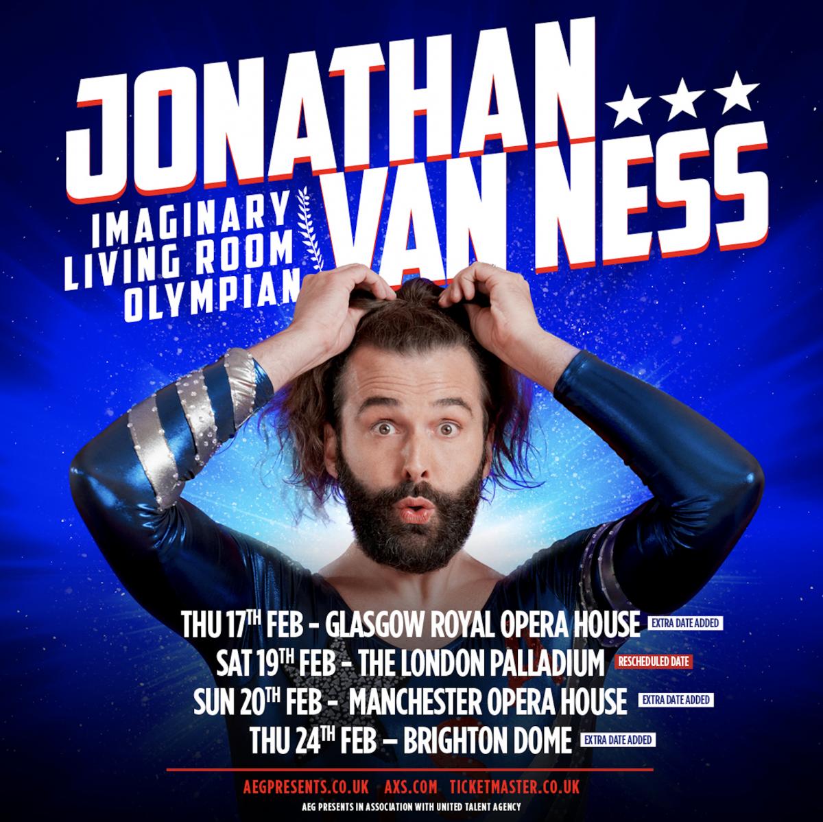 Jonathan Van Ness has announced three more UK performances of his Imaginary Living Room Olympian show.