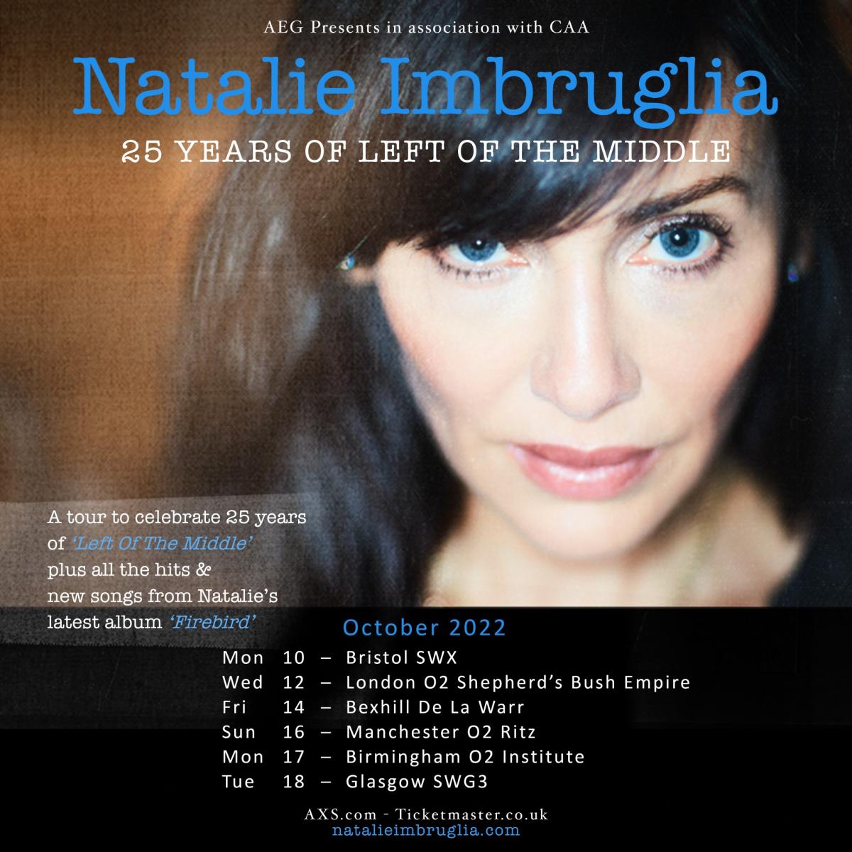 Natalie Imbruglia has announced the 25 Years Of Left Of The Middle Tour.