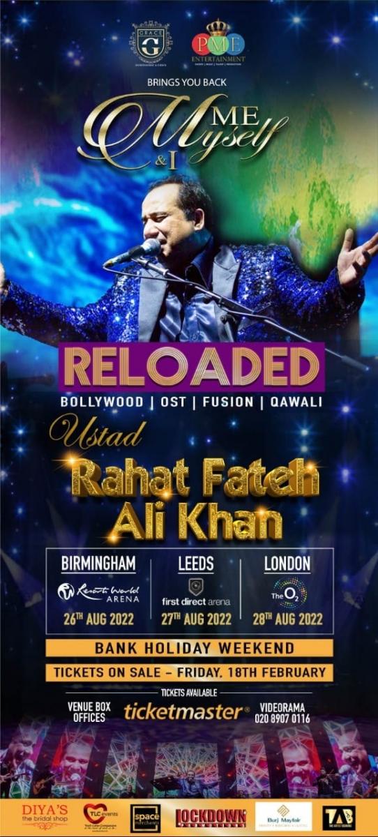 Rahat Fateh Ali Khan will bring his Me, Myself and I Reloaded Tour to the UK in August.