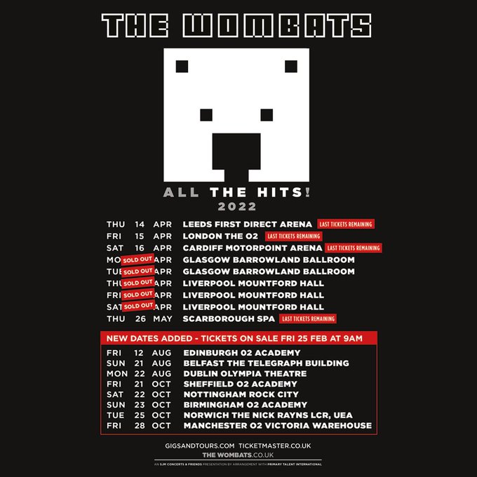 The Wombats have added new summer and autumn dates to All The Hits! Tour.