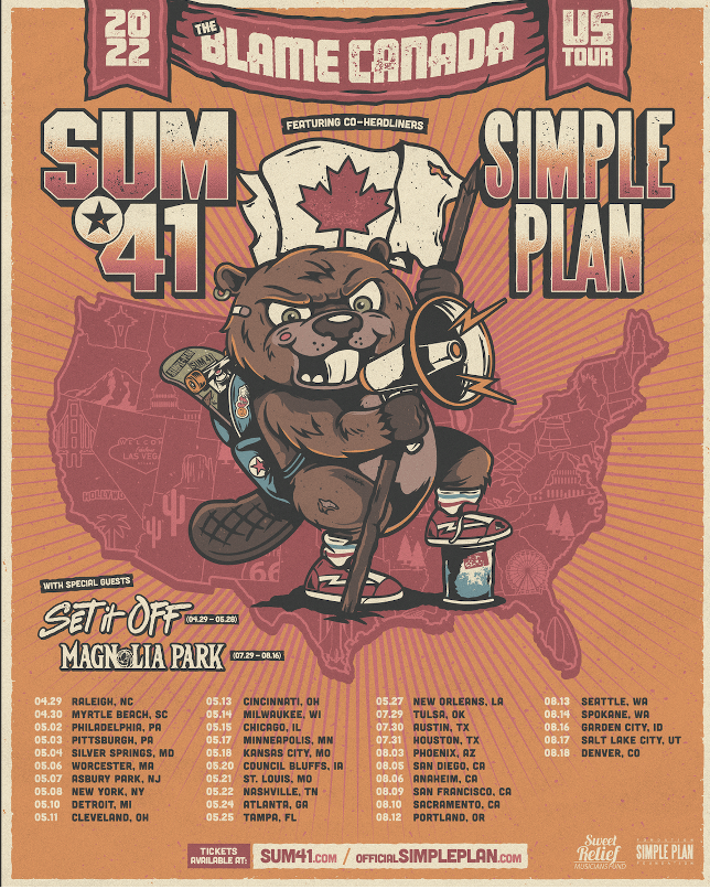 “We’re so happy to finally be able to play shows again and couldn’t be more excited to head out on the ‘Blame Canada’ tour with Sum 41! It’s hard to believe this will the first time we will co-headline a tour together, but the timing couldn’t be better as we both celebrate the 20th anniversary of our debut albums!”