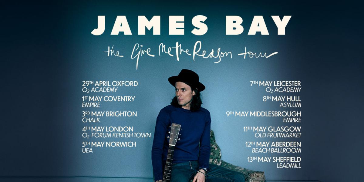 James Bay has announced his Give Me The Reason Tour for April and May. James Bay tickets go on sale at 9am today.
