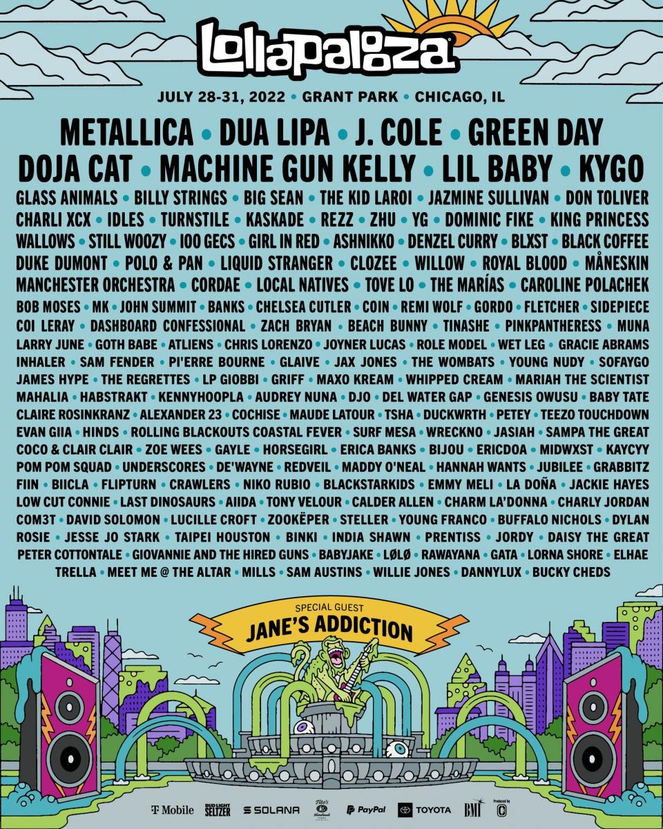 Metallica, Dua Lipa, J. Cole and Green Day will headline this year's Lollapalozza.