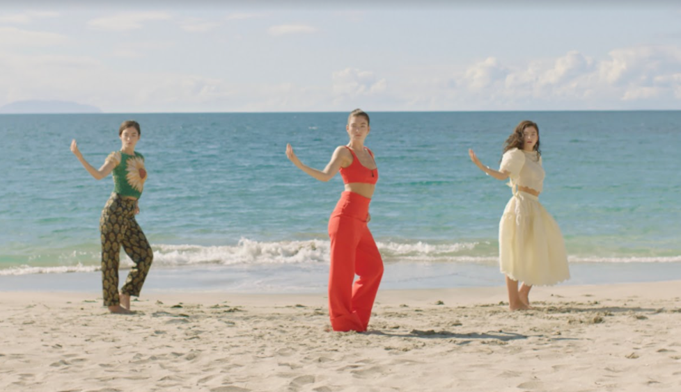 The wistful, floaty track appears on her latest album, 'Solar Power', while the clip features three versions of the New Zealand pop star and takes place on the beach.
