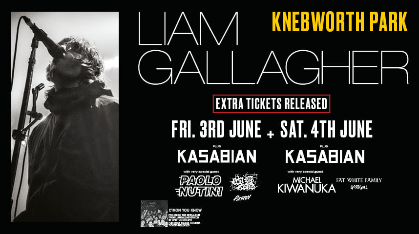 Liam Gallagher will play two nights at Knebworth Park this summer. Extra Liam Gallagher tickets will be released at 10am today.