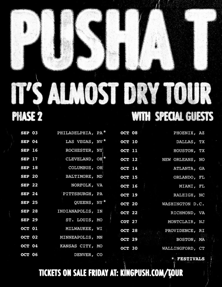 Pusha T has announced Phase 2 of the It's Almost Dry Tour.