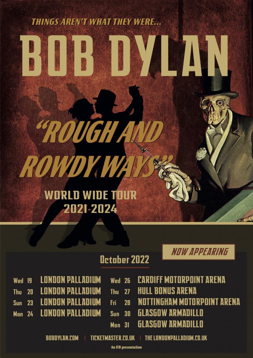 Bob Dylan has announced the UK leg of the Rough And Rowdy Ways World Wide Tour. Bob Dylan tickets go on sale at 10am today.