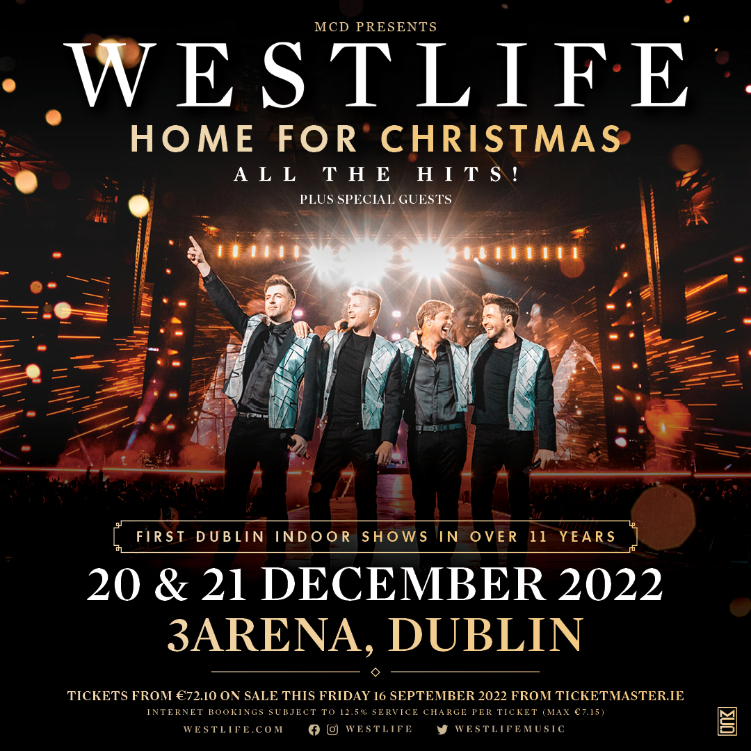 The Irish vocal group will headline the 3Arena on December 20 and 21 for shows they've billed as Home For Christmas. Tickets go on general sale at 9am on September 16.