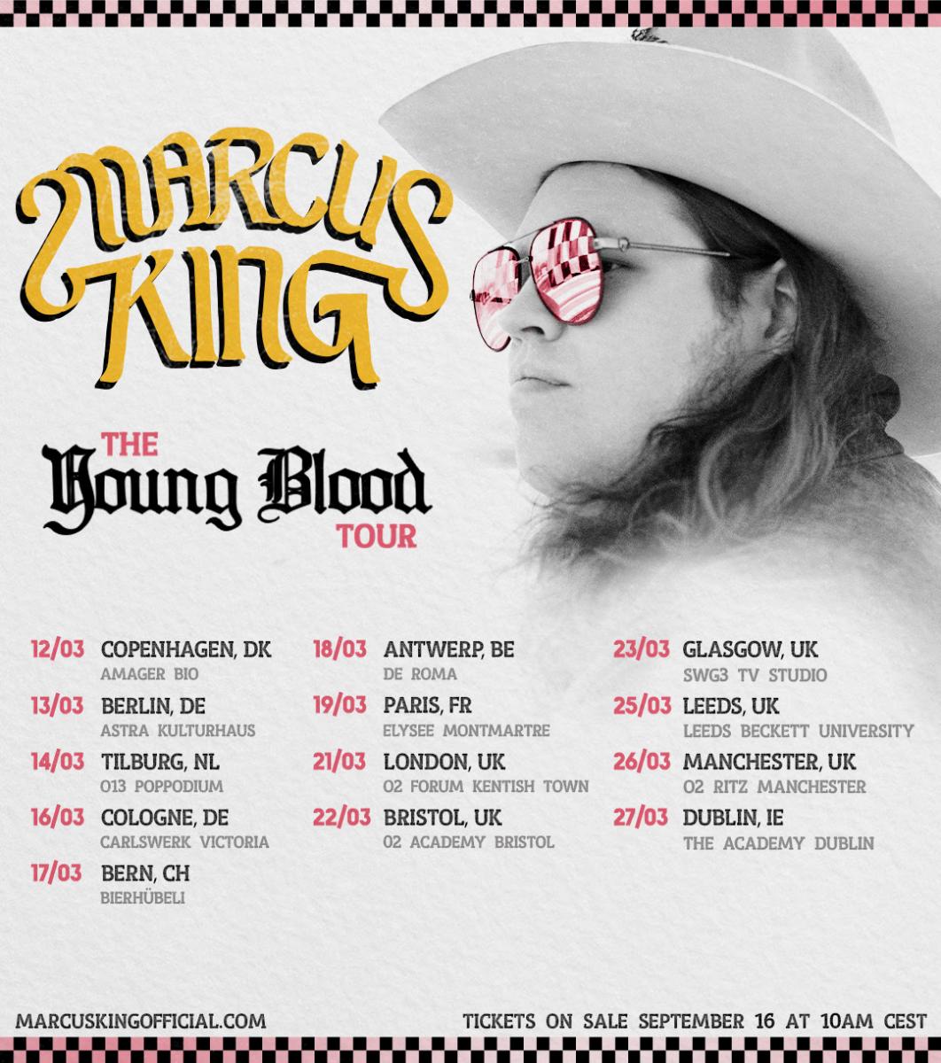 Marcus King will bring The Young Blood Tour to the UK and Europe next spring.