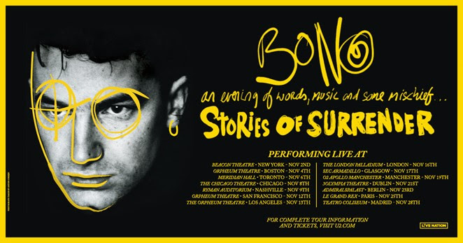 “I miss being on stage and the closeness of U2’s audience. In these shows I’ve got some stories to sing, and some songs to tell… Plus I want to have some fun presenting my ME-moir, SURRENDER, which is really more of a WE-moir if I think of all the people who helped me get from there to here.”