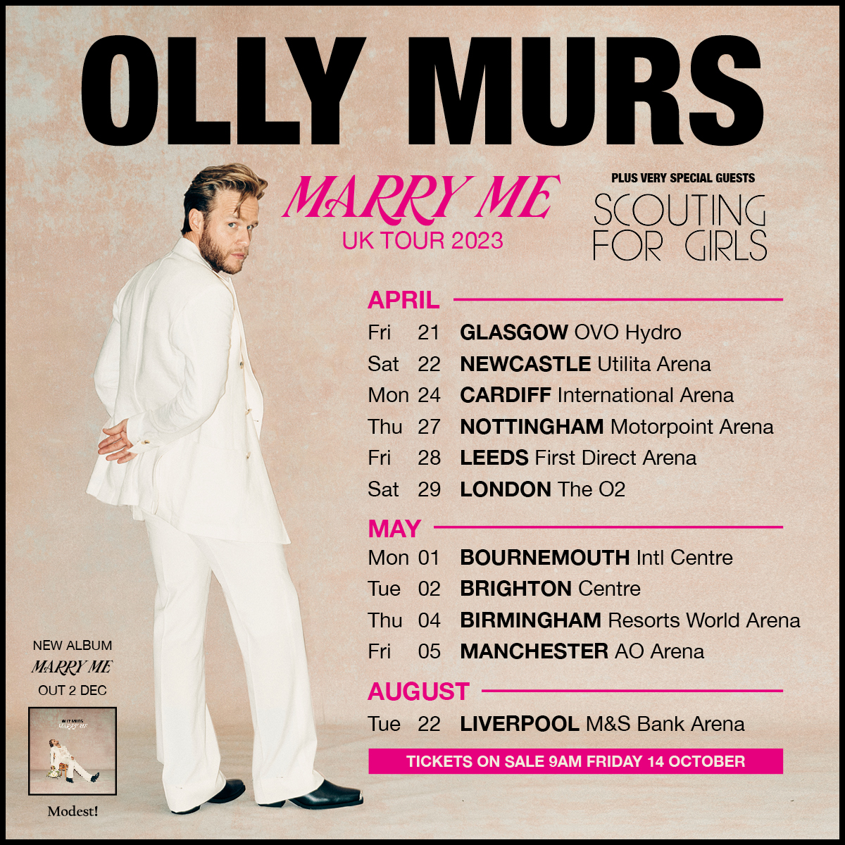 The Essex vocalist will release ’Marry Me’, the follow-up to 2018’s ’You Know I Know’, on December 2. He’ll support it with arena shows in Glasgow, Newcastle, Cardiff, Nottingham, Leeds, London, Bournemouth, Brighton, Birmingham and Manchester between April 21 and May 5.