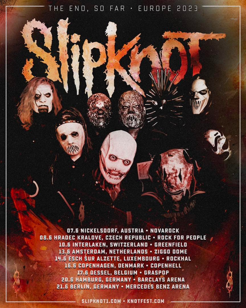 The masked metallers will headline Nova Rock in Austria, Czech Republic's Rock For People and Switzerland's Greenfield Festival before their own arena shows in Amsterdam, Esch Sur Alzette, Hamburg and Berlin during June.