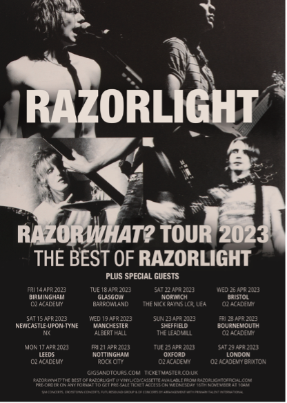 The tour shares its name with the London rockers' new Best Of album, 'Razorwhat? The Best Of Razorlight', which is due out on December 9. It brings together 11 of their best tracks with two new songs, You Are Entering The Human Heart and Violence Forever?.