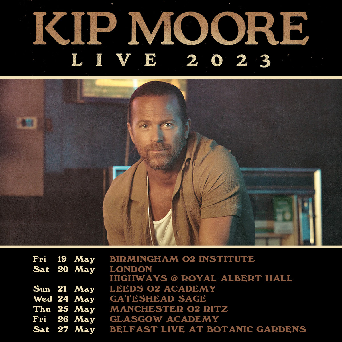 Kip Moore Upcoming Tour Dates are as follows Fri May 19 2023 - BIRMINGHAM O2 Institute