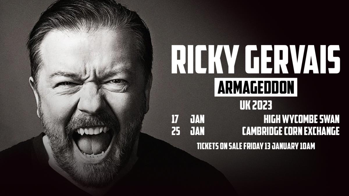 Ricky Gervais has added two new shows to his Armageddon Tour. Ricky Gervais tickets go on sale at 10am today.