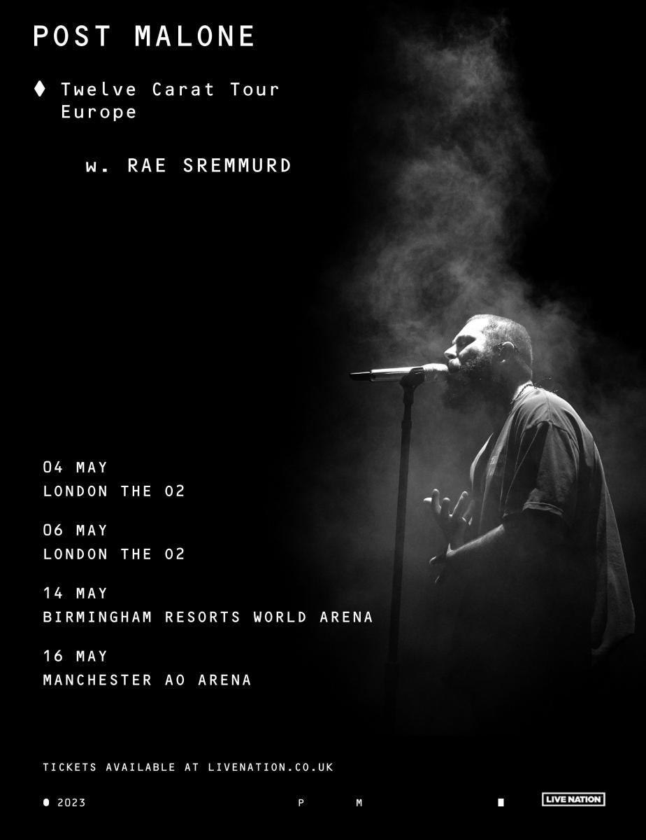 Post Malone will bring his Twelve Carat Tour to the UK and Europe this spring.