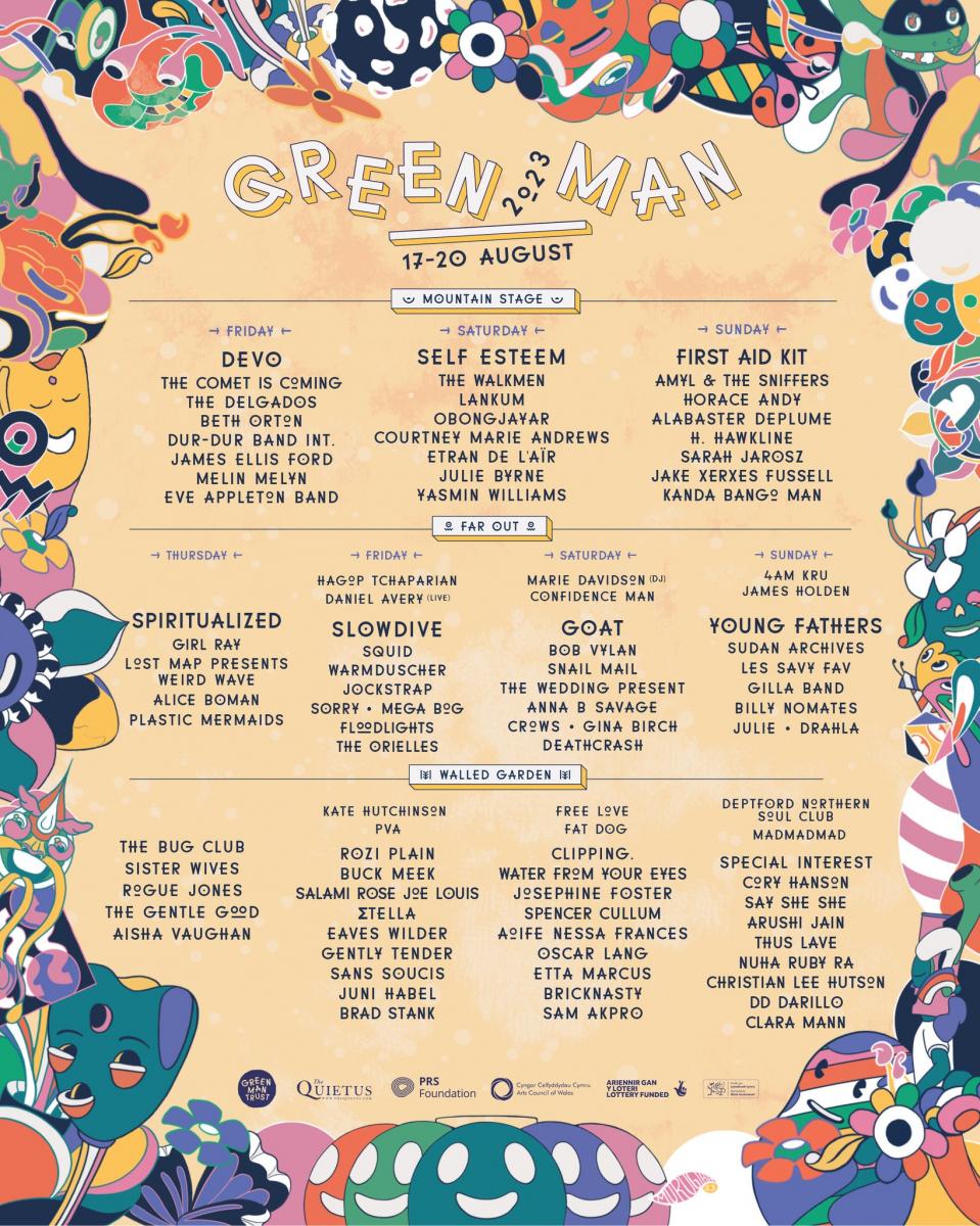 Who? Previously announced acts include headliners Self Esteem, First Aid Kit, Devo, and Spiritualized, as well as Amyl And The Sniffers, Slowdive, The Walkmen, Young Fathers, Confidence Man, Goat, The Comet Is Coming, Lankum, Snail Mail, Squid, Warmduscher, The Delgados, Horace Andy, Daniel Avery, Sudan Archives, Jockstrap, Obongjayar, Courtney Marie Andrews, Dur-Dur Band, Alabaster, Deplume, Beth Orton, Les Savy Fav, Clipping, Bob Vylan, Billy Nomates, Sorry, Special Interest, Gilla Band, Josephine Foster, Gina Birch, James Holden, Marie Davidson (DJ), The Wedding Present, Buck Meek, Sarah Jarosz, Spencer Cullum, Anna B Savage, Girl Ray, PVA, Crows, Julie, Rozi Plain, and Cory Hanson.