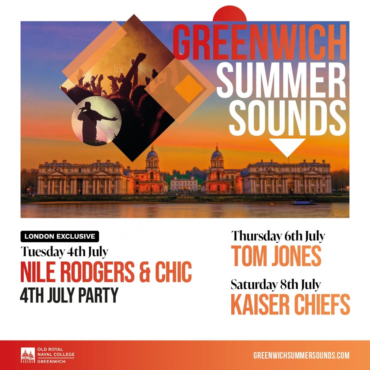Greenwich Summer Sounds will take place at the iconic Old Royal Naval College on the banks of the River Thames, with headliners Nile Rodgers and CHIC (pictured), Tom Jones and Kaiser Chiefs confirmed for July 4, 6 and 8, respectively.