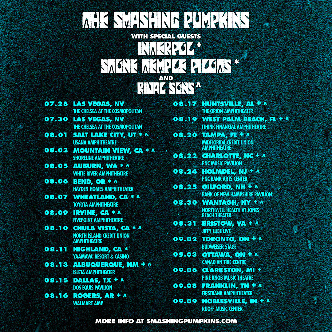 The Smashing Pumpkins Upcoming Tour Dates are as follows