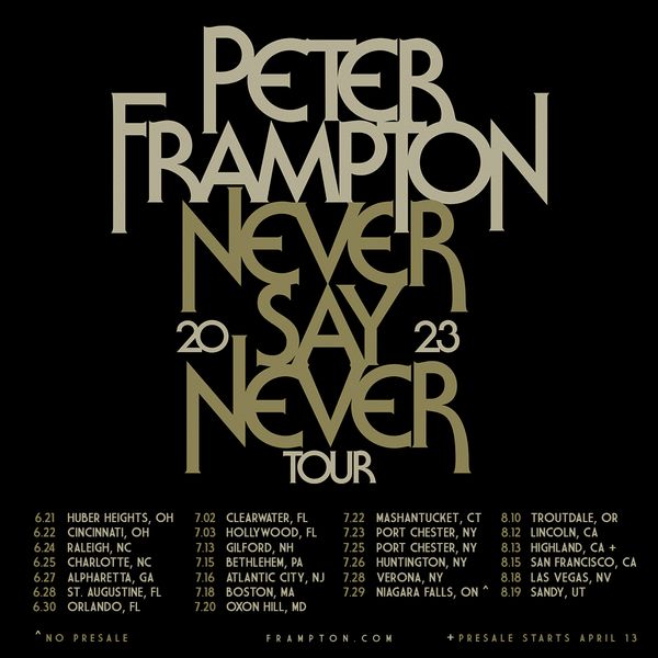 Peter Frampton Upcoming Tour Dates are as follows