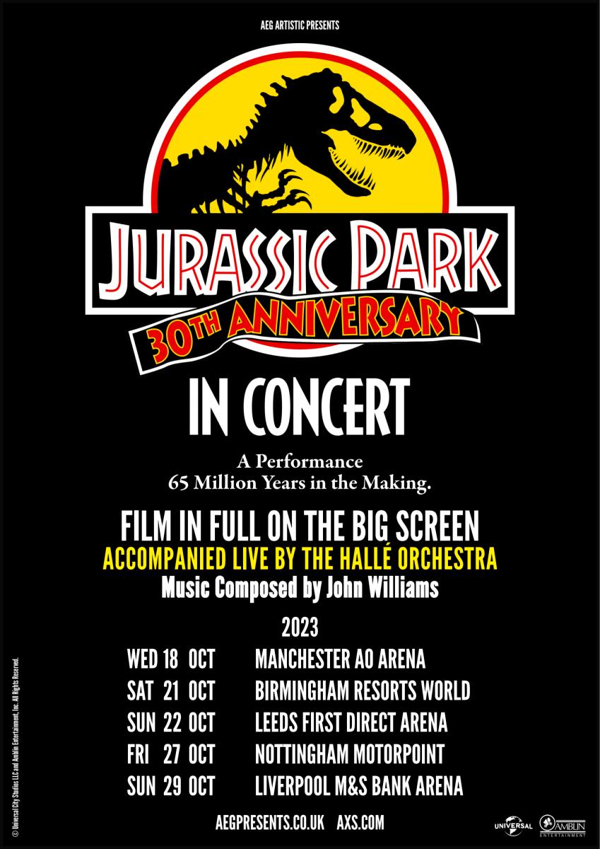Steven Spielberg’s hit film will be celebrated at Manchester’s AO Arena, Birmingham’s Resorts World Arena, Leeds’ First Direct Arena, the Motorpoint Arena in Nottingham and the M&S Bank Arena in Liverpool during October. The 1993 movie will be played in full on a big screen and accompied by the Hallé Orchestra.
