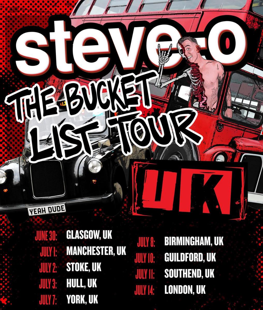 Steve-O will bring The Bucket List Tour to the UK this summer.