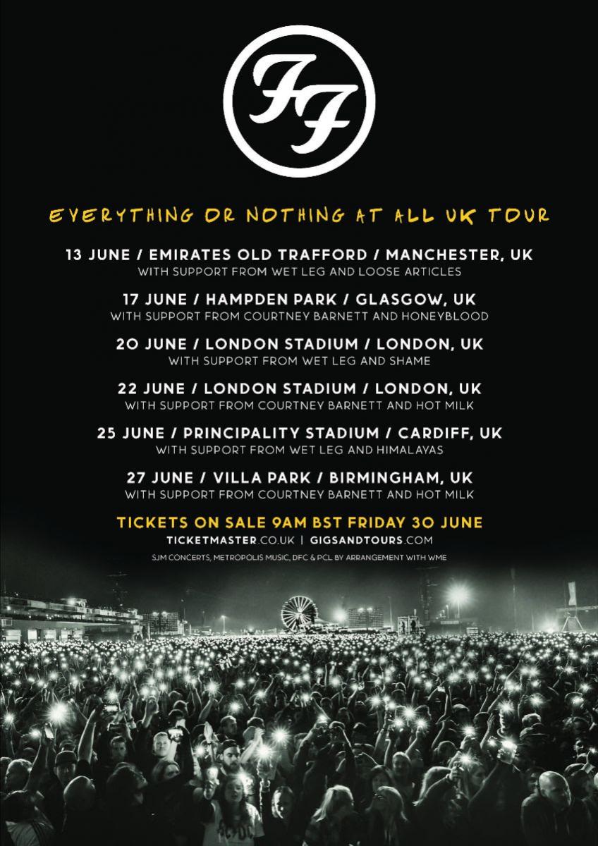 Foo Fighters will bring their Everything Or Nothing Tour to the UK next summer.