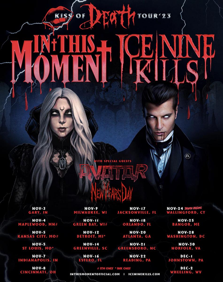 In This Moment have also announced North American co-headline shows with Ice Nine Kills for the fall. Dubbed the Kiss Of Death Tour, the run will kick off on November 3 with support from special guests Avatar and New Years Day. Tickets go on general sale at 10am local time on Friday (July 21).