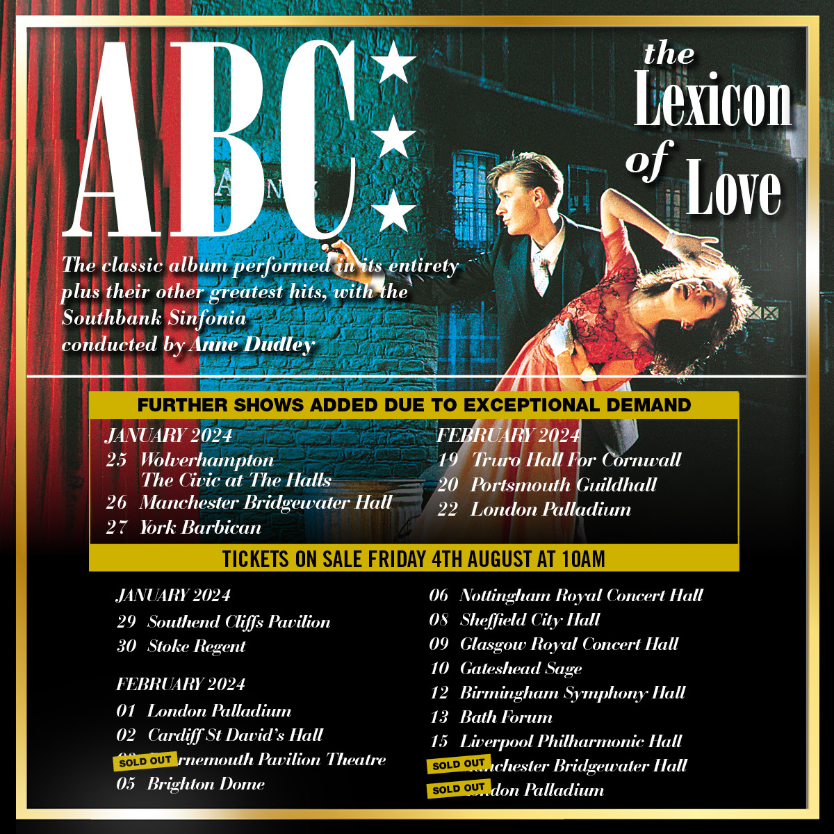 Each night ABC will celebrate their 1982 debut album, 'The Lexicon Of Love', by performing it in its entirety. Tickets for the new dates go on general sale at 10am on Friday (August 4), while all other shows are on sale now.