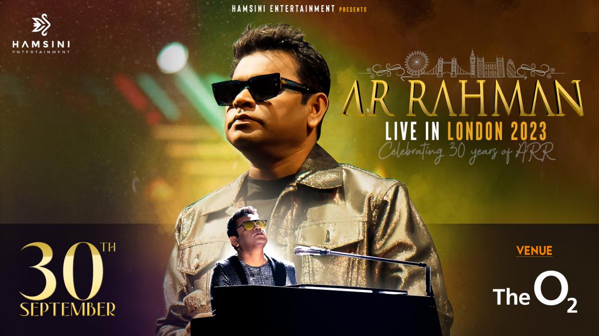 The Indian composer and singer-songwriter will headline the O2 Arena on September 30, with the night described as "Celebrating 30 Years Of ARR."