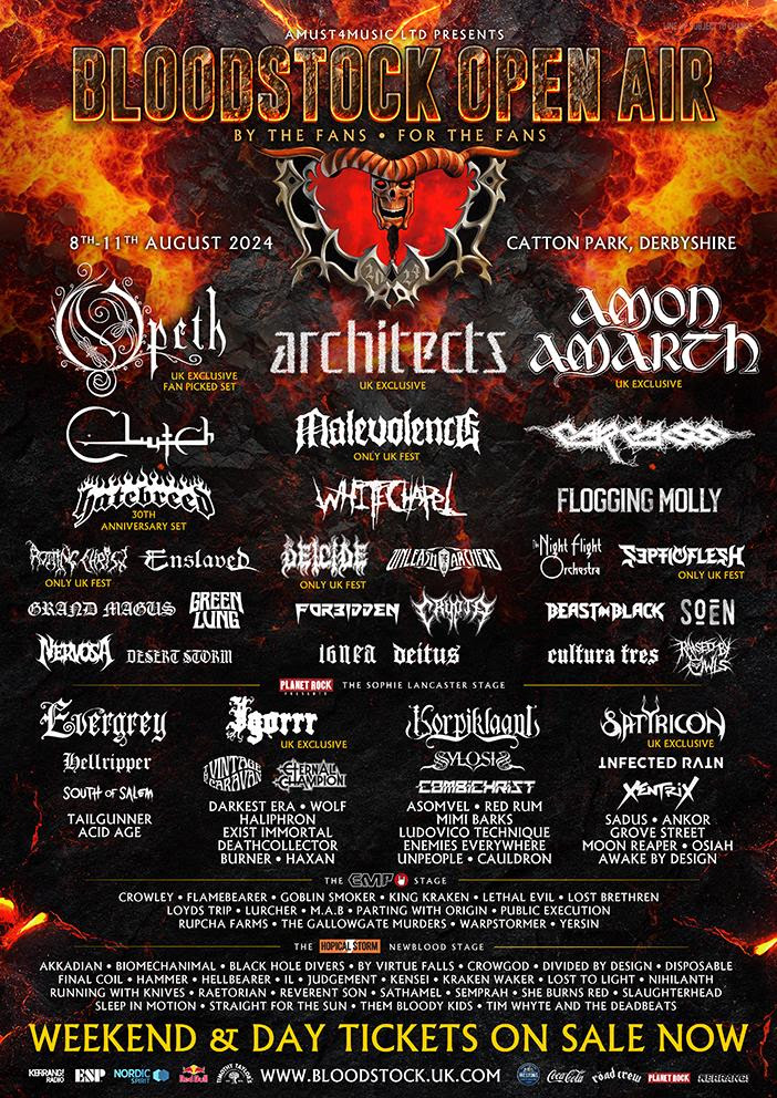 They join the previously confirmed headliners Opeth, Architects and Amon Amarth, as well as Clutch, Malevolence, Rotting Christ, Flogging Molly, Unleash The Archers, Night Flight Orchestra, Septic Flesh, Green Lung, Hatebreed, Enslaved, Nervosa, Crypta, Beast In Black, Forbidden, Igorrr, Korpiklaani, Hellripper, Infected Rain, Whitechapel, Grand Magus, Deicide, Desert Storm, The Vintage Caravan, Exist Immortal, Eternal Champion, Mimi Barks, Grove Street, Carcass, Cultura Tres, Satyricon, Sylosis, Ludovico Technique, Red Rum, Sadus, Ankor, Evergrey, Tailgunner, and South Of Salem.