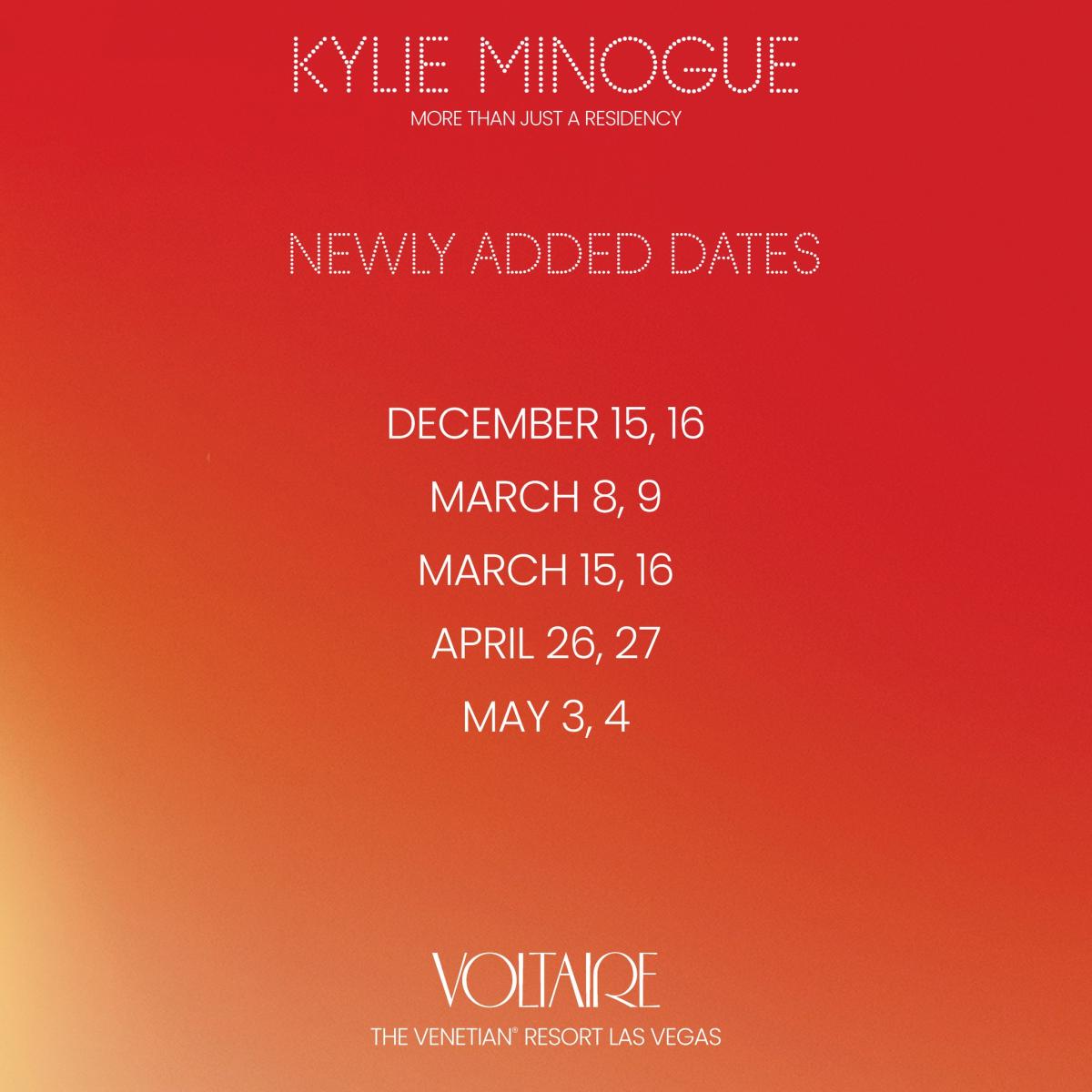 Kylie Minogue has added extra dates to her Las Vegas residency.