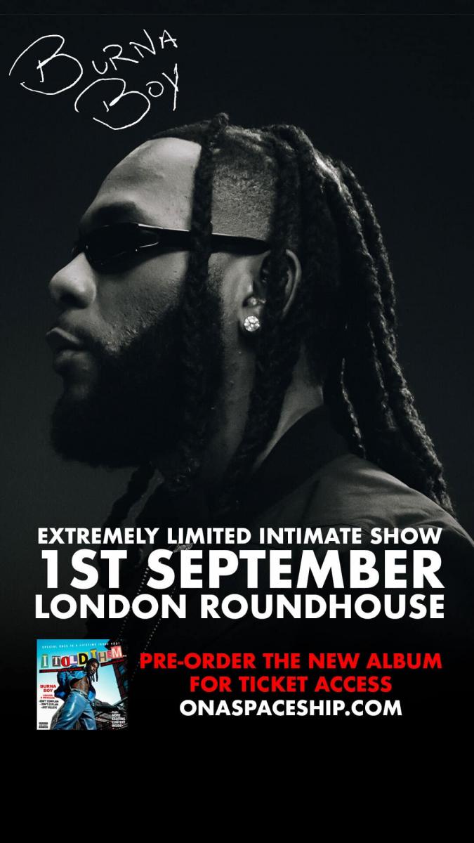 Burna Boy has also announced that he'll play an intimate London show at the Roundhouse on September 1. Only those who pre-order his album will have access to tickets. It will follow his sold-out performance at Pryzm in Kingston on August 27.