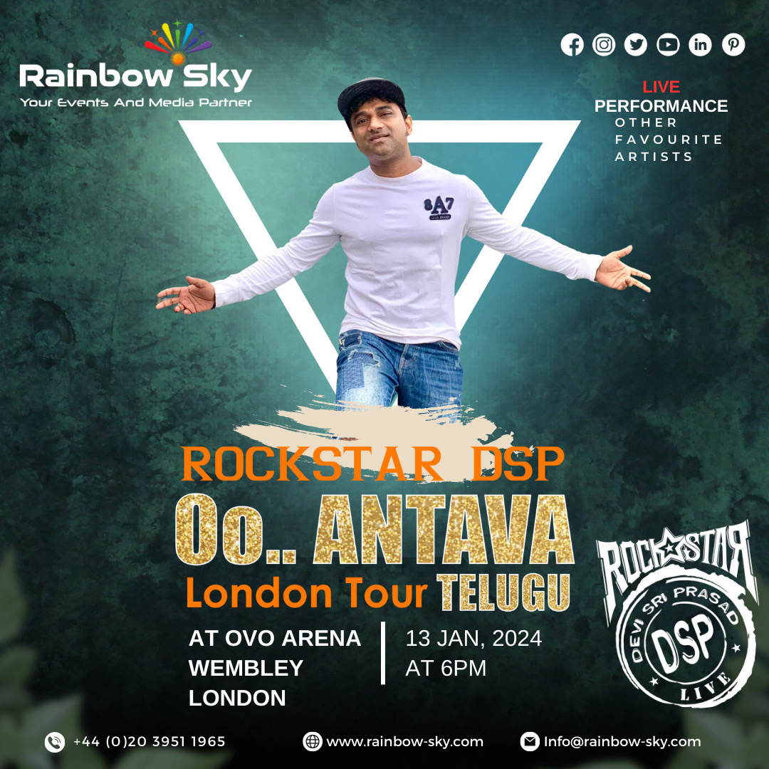 The Indian composer and singer will headline the OVO Arena Wembley on January 13 for what has been billed as Oo.. Antava Telugu London Tour, and the next day for Oo.. Solriya Tamil London Tour: Mega Music Festival.