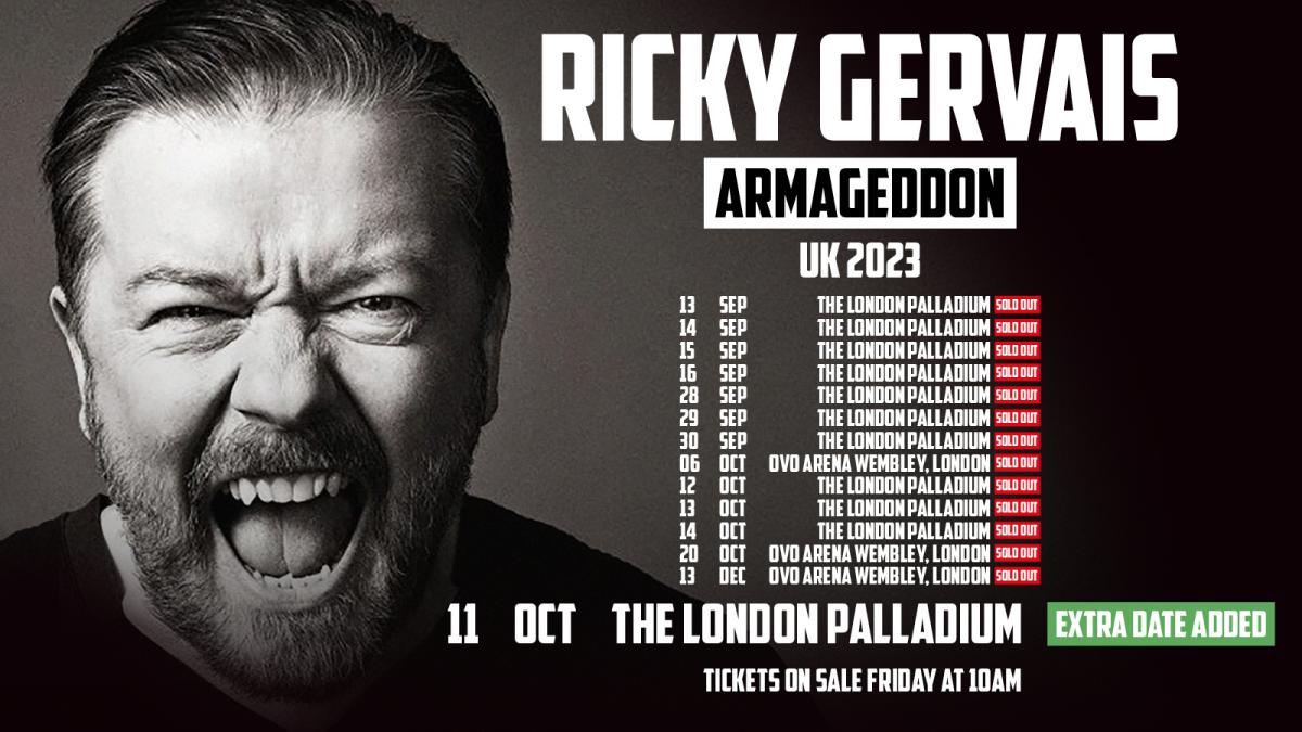 Ricky Gervais has added yet another London date to his Armageddon Tour.