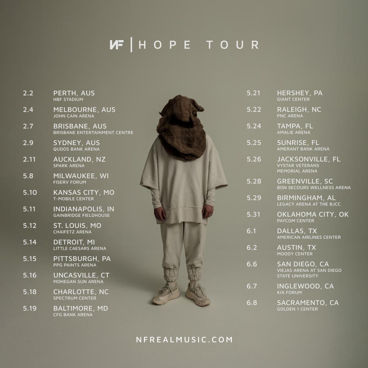 NF has announced the second leg of his Hope Tour, which features dates in Australia, New Zealand and the United States.