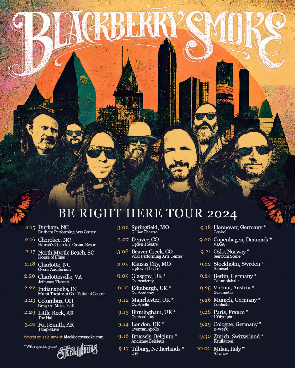 Blackberry Smoke will finish off the year with previously announced shows across North America that also form part of the Be Right Here Tour. Tickets for those dates are already on sale.