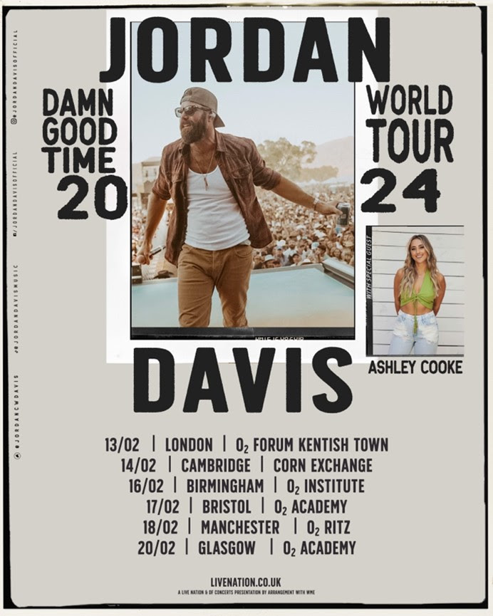 The country star will bring his Damn Good Time Tour to London, Cambridge, Birmingham, Bristol, Manchester, Glasgow and Belfast in February. Support will come from Ashley Cooke.