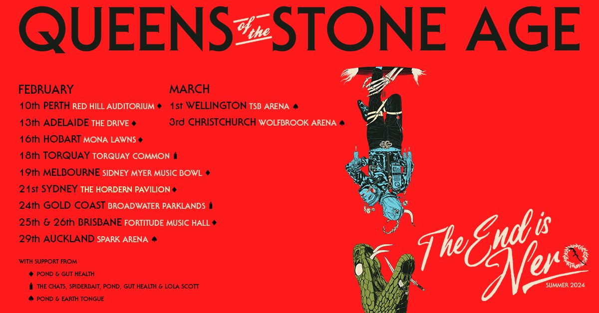 Queens Of The Stone Age will take The End Is Nero Tour to Australia and New Zealand in early 2024.