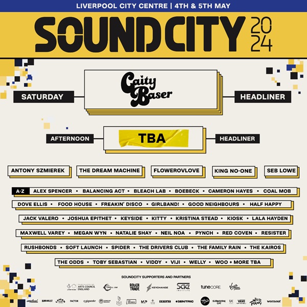Headlining the bill will be Caity Baser and The Snuts. Other acts confirmed for the weekend include Antony Szmierek, Brooke Combe, Flowerovlove, Seb Lowe, Corella, Viji, Lala Hayden, Balancing Act, Cameron Hayes, G!rlband, Bandit, Keyside, Megan Wyn, M60, Food House, Forgetting The Future, Woo, and The Dream Machine, Bleach Lab, Spider, Welly, Good Neighbours and Pynch, King No-One, Toby Sebastian, Alex Spencer, The Kairos, Natalie Shay, The Family Rain, Casino, Dove Ellis and Skylights.