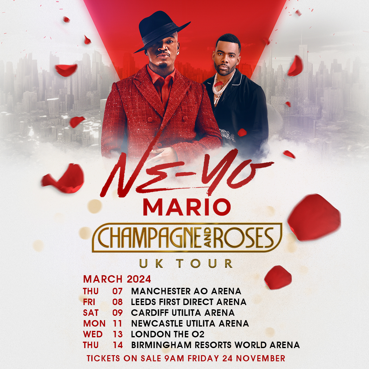 NE-YO has announced the Champagne and Roses UK Tour. NE-YO tickets go on general sale at 9am today.