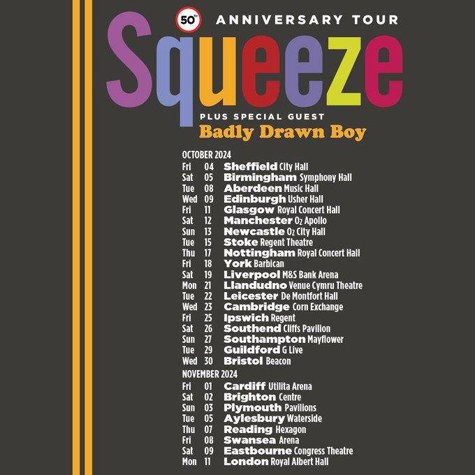 Squeeze Upcoming Tour Dates are as follows