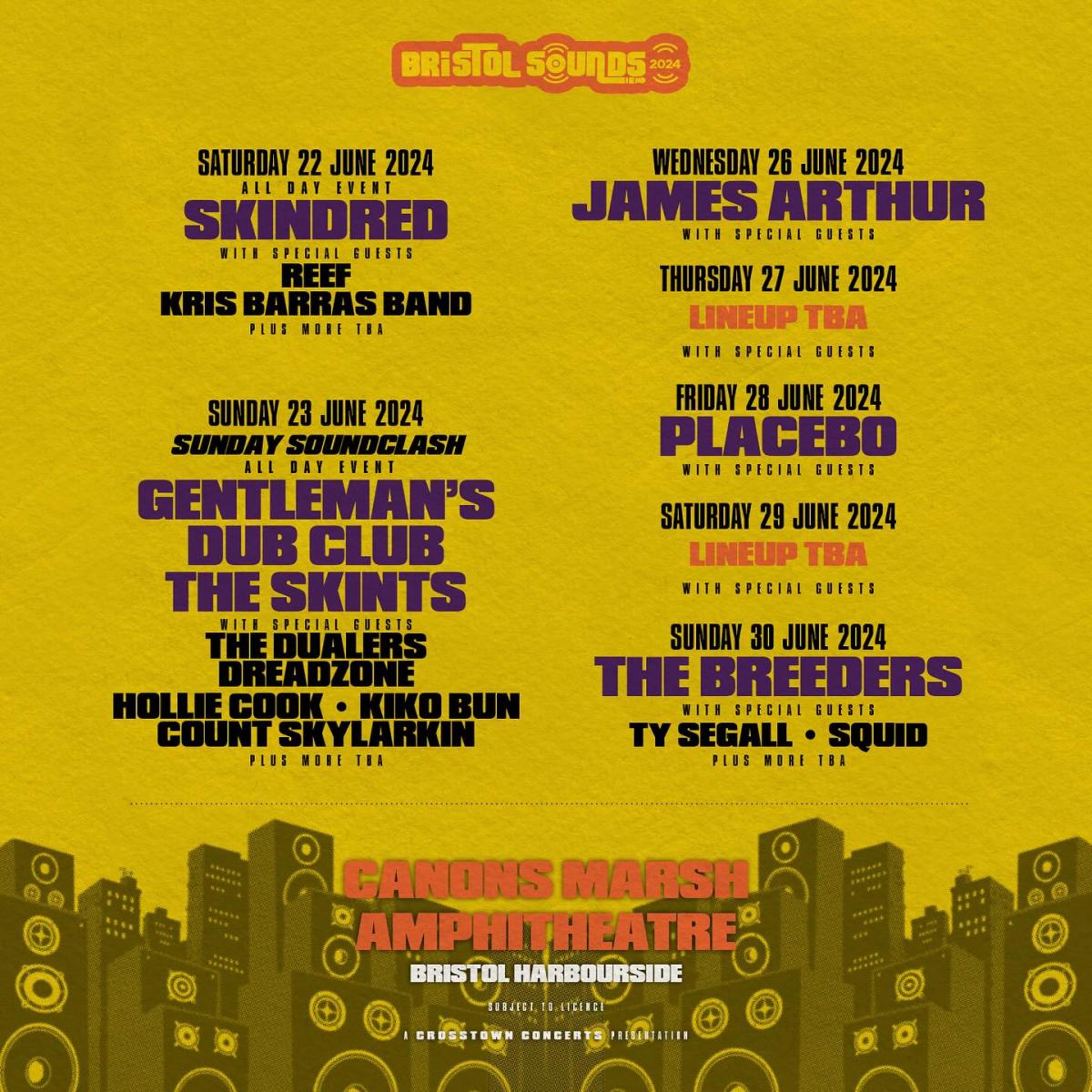 Sun June 23 2024 - BRISTOL Cannons Marsh Ampitheatre [Gentleman's Dub Club/The Skints]