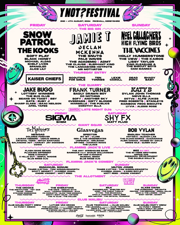 Late night DJs include Sigma on the Friday night, and Shy FX on the Saturday. Jason Oakley, Managing Director at Y Not Festival, said: