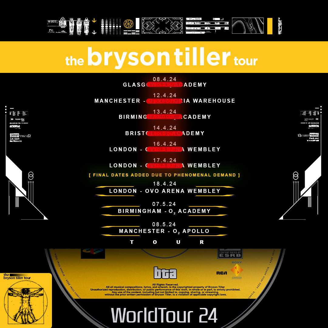 Bryson Tiller has added second Birmingham and Manchester dates to his World Tour.