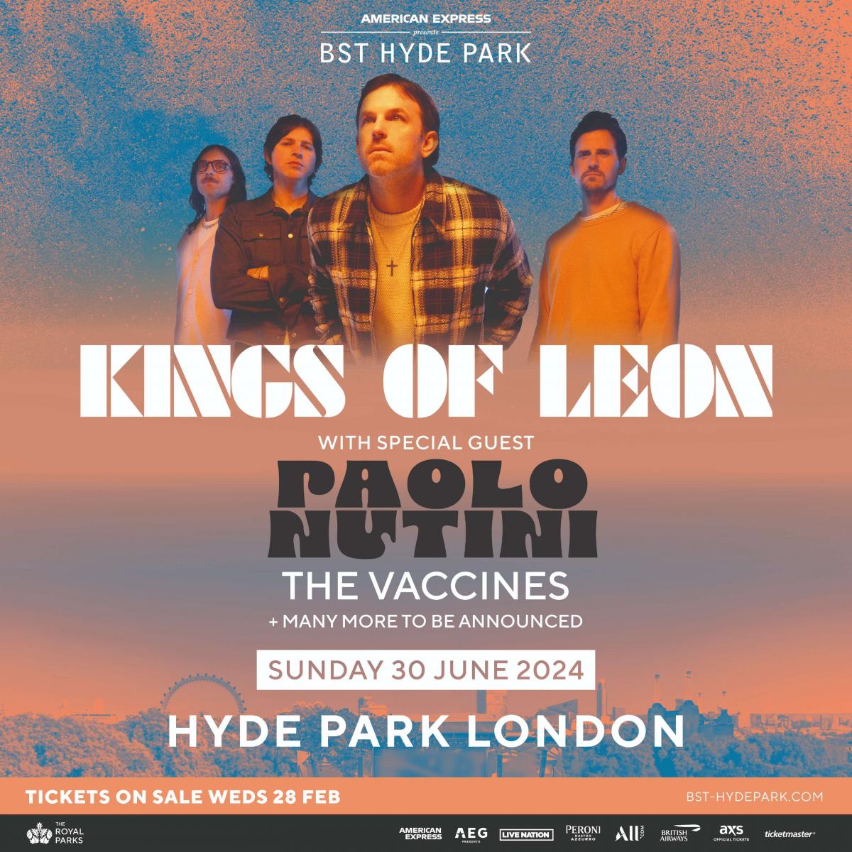The Nashville band, comprising Caleb Followill, Nathan Followill, Jared Followill and their cousin Matthew Followill, will take to the stage as part of the outdoor London concert series on June 30. Support will come from special guest Paolo Nutini, as well as The Vaccines, and more acts that are still to be revealed.