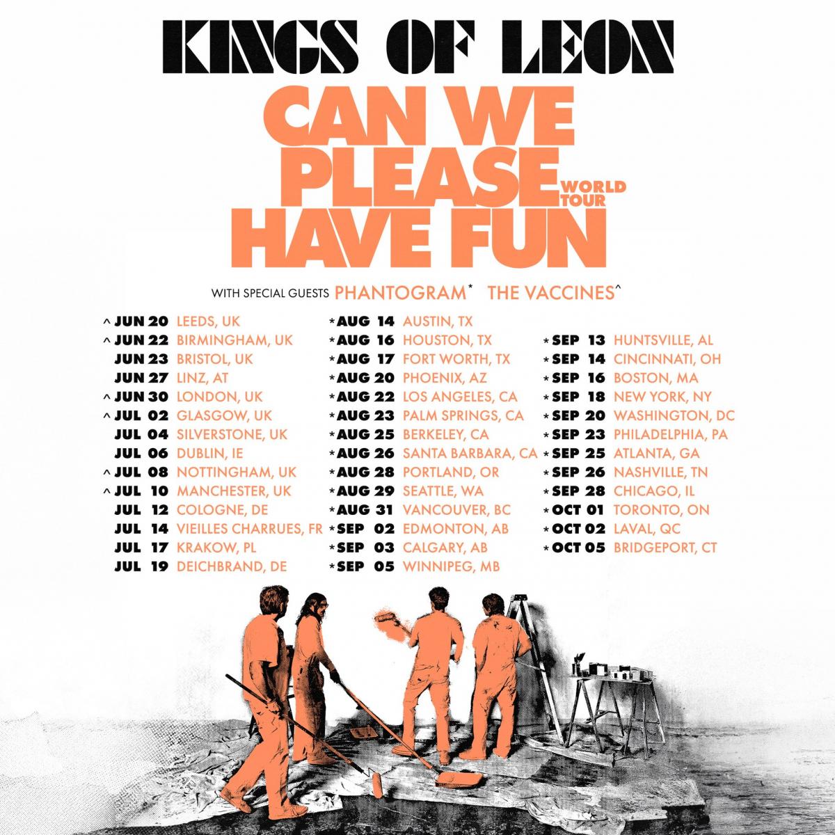 Kings of Leon Upcoming Tour Dates are as follows